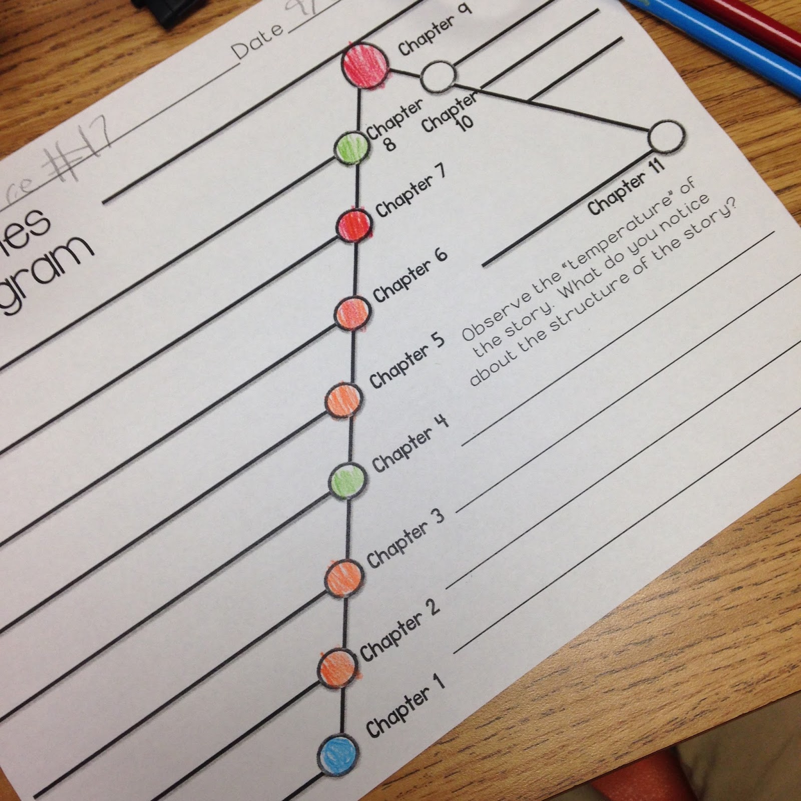 Let’s face it.  How in the WORLD are we supposed to teach some of these standards.  We have relied on the interpretations of  the book companies and other “experts” in the field.  Most of us don’t know these experts.  Plus, they are raising the Lexile levels to the point that students are struggling to understand the information.  I thought I would attack this in a different way.  I brought in the higher order thinking and paired it with the lower text level so that students can understand  what the standard is trying to teach.  With this text we focused on the structure of the novel, Standard 5.  We were able to track story events throughout the reading.  This would have been very difficult to do if I just handed them a plot diagram.  This would have been very difficult if we just read a single story from our text.  Instead,  we charted this “fever” with the use of a thermometer.